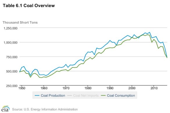 Global coal production fell by 6.2% last year. That’s the largest annual decline on record. Consumption was down, too, for the second year in a row, falling 1.7%.