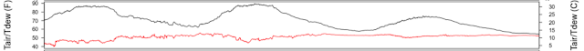 The temperature plot is shown right below – highs dropping from 95 to 73.